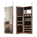 Surprise your loved one with our jewelry armoire with mirror! The full-length mirror ensures a flawless look from head to toe, while the interior mirror will be a nice makeup option. The jewelry area of this storage organizer features 60 earring slots, 52 ring slots, 39 necklace & bracelet hooks, 4 storage shelves, 3 acrylic storage boxes, 1 hanging rod, 1 velvet pocket, and 1 lipstick tray to hold lots of jewelry, cosmetics, and makeup tools. Additionally, the jewelry cabinet features cut-out handle, magnetic catch, and lockable doors for easy opening and safe closing. You can hang it over the door with adjustable hangers or mount it on the wall with expansion screws, saving floor space. Bullet Point: Sufficient Storage Space: The jewelry armoire has 60 earring slots, 52 ring slots, 39 necklace and bracelet hooks, 4 storage shelves, 3 acrylic storage boxes, 1 hanging rod, 1 velvet pocket, and 1 lipstick tray, providing ample space for you to arrange your cosmetics and jewelry. Comes with 2 Mirrors: The frameless full-length mirror offers clear reflection and a head-to-toe view, allowing you to better try on clothes or check your outfit. The built-in makeup mirror makes it convenient for you to make up. 2 Mounting Methods: Coming with adjustable hangers and expansion screws, the jewelry organizer can be easily mounted on the wall or hung over the door for space-saving jewelry storage. You can use it in your bedroom, living room, walk-in closet, entryway, and more. Easy to Open or Lock: The cut-out handle helps you conveniently open the door. The door can be opened 180 degrees for easy access. It is also fitted with magnetic catch for tight closing. Moreover, the lockable door with keys prevents kids from opening the jewelry cabinet accidentally. Well-made Jewelry Cabinet: Crafted with high-quality MDF, the jewelry mirror cabinet is strong and sturdy enough to offer long-lasting service. The faux wood grain surface brings elegance and texture to your room.