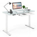 This electric standing desk blends functionality and style with its height-adjustable feature, ranging from 73cm to 118cm. Powered by an efficient motor, it operates at a speed of 24mm/s, keeping noise levels low at 55dB to maintain a focused environment. The tempered glass surface is not only waterproof and easy to clean but is also designed for writing convenience. Below the sleek top, a smoothly integrated drawer slides quietly on metal rails, providing adequate storage. Control is at your fingertips with the multi-function intelligent keypad. The inclusion of USB and Type-C ports ensures your gadgets stay powered, enhancing productivity without leaving your desk. The desk features anti-collision technology for safety, halting, and retracting upon sensing any obstacles. Transform and optimize your work area with this practical, space-efficient standing desk, suitable for any room. Smooth Height Adjustment: The electric standing desk features a height adjustable range of 73cm to 118cm to meet your work preferences. Its powerful motor enables smooth operation at 24mm/s, ensuring quick and ultra quiet (55dB) changes without disrupting your focus. Tempered Glass Top with Drawer: The tempered glass top is not only waterproof and easy-to-clean but also writable, perfect for jotting down quick notes. Integrated with quiet metal slides, the drawer offers convenient storage for books, stationery, and office supplies, maintaining a clutter-free area. Multi-Function Intelligent Keypad: Stay in control with the advanced multi-function intelligent keypad, featuring a digital display with cm/inch switchable views, up/down controls, and two memory presets to save your preferred heights. The keypad also includes USB and Type-C ports to keep your devices charged and ready at all times. Anti-collision Design and Convenient Details: Designed with your safety in mind, this sit stand desk includes anti-collision protection that automatically stops and retreats when encountering obstacles. Adjustable foot pads ensure level placement even on uneven floors. Cable clips also provide great convenience. Practical for Various Uses: Measuring 120 x 60 cm, the spacious desktop offers ample room for a variety of home office activities. Whether you’re working on a laptop, reading, or organizing office supplies, the robust design supports a maximum static load of 90kg, making it a versatile piece for any room.