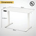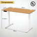 Color: White/Rustic Brown and Black/Natural & White Material: Engineered Wood, Metal Desk Dimensions:120 x 60 x 73-122 cm (L x W x H) Legroom Width:88 cm Max. Speed:s, 24 mm/s Operating Noise < 55 dB Max. Load Capacity:80 kg Net Weight:22.5 kg Package Includes: 1 x Electric Standing Desk 1 x User Guide