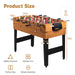 If you are looking for a versatile combo table for family gathering or other indoor activities, our multifunctional 3-in-1 game table will undoubtedly be your ideal choice. The perfect combination of billiard table, foosball table and hockey table adds much more fun to your leisure time, capable of catering to different entertainment needs. Apart from giving you an unforgettable gaming experience, the game table is designed to strengthen parent-child relationship. Considering convenient use, different game tables can be stacked firmly by the side hooks, which makes full use of space at the same time. Adjustable foot pads highly improve overall stability. Iron rods and easy-grip handles help you complete the game well while necessary tools are included to further enhance the game experience. More, the score record is designed to record points in real time. This game table is an ideal option for diverse occasions, such as Christmas party, family or friends gathering, etc. Versatile 3-in-1 Design: For the purpose of catering to your various entertainment needs, this 3-in-1 game table works great as a billiard table, foosball table and hockey table. What you need to do is switch one game desktop to your desired one, which allows you to immerse in the endless fun of different games effortless. Cheerful Family Time: This combo game table is the same as standard competition size to ensure realistic feel, making it an ideal entertainment equipment for family gathering. In addition to providing more pleasure during your leisure time, this game table also strengthens interaction between parents and their kids. Excellent Durability and Stability: Thanks to the reinforced structure and side locks, this game table keeps stable at specific place for worry-free use. The game table also features iron rods and non-slip rubber handles for long-lasting use even in fierce competition, which help you complete the game well. Besides, adjustable foot pads further enhance overall stability. Compact Size for Easy Storage: With the size of 126cm x 58cm x 82cm(L x W x H), this game table is smartly to be placed in any limited space like the corner of your home. You can stack different game tables one by one when not in use, which frees up sufficient play area for other activities while improving space utilization. A Full Set of Accessories: The game table comes with all necessary accessories, including 1 brush, 1 pool ball triangle, 1 box of billiards, 2 soccer balls, 2 hockey pushers, 2 hockey pucks, 2 chalk, 2 cue sticks. In addition, the score record brings much convenience to record points and adds excitement to the real game.