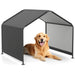 This outdoor dog shade shelter boasts a generous size of 129 x 124 x 108 cm (L x W x H), offering a spacious canopy for dogs of all sizes, also serving as a cool and well-ventilated retreat for cats, rabbits, chickens, and various other pets. Crafted from 420D oxford canopy with PU coating, the shelter is built to withstand the elements. Supported by heavy-duty powder-coated metal tubes, complete with metal plates and ground stakes, it offers reliable support and stability even in windy conditions. Thanks to its snap-on structure, this pet house is easy to set up, though remember to attach the canopy before securing the leg joints. Whether for a nap under the shade or a mealtime retreat, this versatile shelter makes for an exceptional gift for pet lovers seeking to optimize their pets’ outdoor experiences. Spacious Comfort: This dog shade shelter measures 129cm x 124cm x 108cm (L x W x H), comfortably accommodating large, medium, and small dogs. Also, it serves as cool and ventilated shelter for other pets like cats, rabbits, chickens, and more. All-Weather Protection: Crafted of waterproof 420D oxford fabric with PU coating, this pet tent is designed to withstand wear and tear while offering superior sun and rain protection, ensuring your pet stays safe and comfortable outdoors. Reliable and Stable Construction: The dog canopy is supported by a robust powder-coated metal frame, not easy to deform, built to last. Furthermore, equipped with metal plates and ground stakes, it anchors securely to the ground, ensuring stability and safety. Simple Structure for Easy Setup: Setting up this pet shelter is a breeze thanks to its snap-on design, which simplifies connecting and securing the frame. Please install the canopy cover before attaching the leg connectors for a seamless setup experience. Versatile Use: This outdoor dog tent easily converts into a feeding station or a nap paradise, making it an incredibly versatile addition to your pet care essentials. It’s an ideal and thoughtful gift for pet enthusiasts looking to enhance their pets’ outdoor lifestyle.