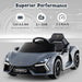 This electric car toy offers kids driving and parent control modes for added safety and fun. Powered by dual 35W motors and a 12V rechargeable battery, the Lamborghini Revuelto ride on combines power and style for a thrilling experience. The hydraulic doors, 4-wheel spring suspension, and soft start functions ensure a secure and enjoyable ride. With user-friendly controls and smooth movement, this ride on toy car provides a fun ride that will keep children engaged for hours. Entertainment is a key feature of this ride on sports car, featuring LED lights, built-in music and stories, and alphabet lessons. You can also personalize your child's ride with wireless, USB, and MP3 connections for added entertainment options. If you are looking for such a product, do not hesitate to buy it! Dual Control Options: Offering double driving modes, this ride on car is ideal for children to drive with 2 speeds or parents to control with 3 speeds. This ensures both safety and fun, providing a perfect balance of control and autonomy for little drivers aged 37 to 95 months old. Simple & Smooth Ride: The electric car toy id designed with a steering wheel, foot pedal, and child-friendly buttons, allowing your little one to drive forward, backward, left, or right. Paired with 2 transport wheels, the ride on toy boasts smooth movement and easy storage. Security Comes First: Equipped with 4 treaded wheels with spring shock absorbers, this ride on sports car ensures a secure and comfortable ride on various surfaces. The hydraulic doors with safety locks enhance security, while soft start and stop functions prevent sudden jolts. Entertainment Never Stops: This ride on toy car comes with bright LED headlights, taillights, and an entertainment system featuring a horn, music, stories, and alphabet lessons. With wireless connection, USB, and MP3 ports, you can add personalized media for a new adventure every time. Powerful & Licensed Design: Powered by dual 35W motors, this Lamborghini Revuelto car has outstanding performance and durability. The 12V rechargeable battery brings kids continuous playtime, easily recharged with the convenient power display and charging port.