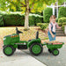 The simulated chimney, LED headlights, and cool shell make it look like a real tractor. It features shockproof wheels with spring suspensions for a thrilling driving experience. Powered by a 12V battery, this electric ride-on tractor runs at a speed of 2.5-3.5 km/h for 1-2 hours. It also has a horn, music, radio, MP3, and wireless connection to entertain kids. Besides, the ride-on comes with an easy-to-operate remote control, allowing parents to guide their little ones to safely drive the car. The slow start function and safety belt make it safer and more reliable. If you are looking for such a product, do not hesitate to buy it! 12V Kids Ride-On Tractor: This toddler tractor has 1 12V rechargeable battery and 2 12V strong motors to run with a speed of 2.5-3.5 km/h. Your little one can fully enjoy driving fun for 1-2 hours. It also comes with a charger for convenient charging. Dual Operation Modes: This kids' ride-on tractor features dual control modes: manual operation and parental remote control. Kids can use the steering wheel, forward/backward button, and foot pedal to independently control the car. Moreover, the remote control with 3 speeds enables parents to master the direction and speed. Tips: It requires 2 AAA batteries, not included. Safe Driving Experience: The slow start function avoids sudden acceleration. It is equipped with an extra safety belt to provide kids with safety protection. The anti-slip and silent wheels have shock suspension to make the car move smoothly and safely on wood floor, cement road, brick road, asphalt road, etc. Offer Multiple Enjoyment: The detachable trailer allows kids to store leaves, toys, flowers, blocks, or other treasures. Also, the electric vehicle is designed with music, radio, MP3, and wireless connection for an interesting driving experience. The USB port can be used to connect external devices for more music. Ideal Driving Gift for Kids: This electric tractor is a nice gift for 3-8 years old kids. It has a simulated chimney, LED headlights, and a fun horn to simulate a real tractor. Made of quality PP material, this vehicle will accompany your little driver for a long time. The seat supports up to 30 kg.