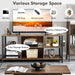Have you found a favoured TV stand? Our TV cabinet would be one of the appropriate choices for you. Spacious desktop is compatible with most flat screen TVs up to 65". Moreover, the 3-tier open shelf and additional storage basket provide you with ideal storage space to hold plenty of items in a neat and orderly way. In addition, thanks to the 2 cable management holes, all the messy wires can be hidden. The industrial TV stand is harmoniously combined with any interior decoration, which makes it ideal for living room, bedroom, reception room, etc. If you are looking for a TV stand like this, do not hesitate to place an order! Accommodate TVs up to 65”: The table top of TV stand measures 140cm(L) x 40cm (W), which is spacious enough to fit television panels up to 65’’. In addition, the entertainment console will be a perfect complement, whether you put the television on the tabletop or mount TV on the wall. Diversified Storage Space: There are 6 open compartments in total to facilitate the placement of daily items, including cable box, DVD player, books, etc. In addition, the 3-position adjustable shelf provides flexible storage space and the extra storage basket makes so easy to store different frequently-used items, which can be hung on the right or left based on your needs. Thoughtful Cable Management Holes: There are 2 cable management holes on the back of the media console table to help you hide the messy wires for more convenience. Such design creates a clean and tidy impression for your home. Robust and Stable Structure: Made of durable engineered wood, this TV cabinet promises longer service life. And supported by the powder-coated steel frame, the media entertainment centre is not easy to wobble or creak. Besides, the adjustable foot pads keep the storage cabinet stable even on uneven ground. Industrial Design and Versatile Use: The clear wood grain and black metal endow the TV table unit with an industrial yet stylish appearance, adding a refined sensation to any place. Moreover, the television storage unit will undoubtedly be a charming complement to your home whether used as a TV stand, console table or storage cabinet.