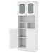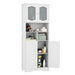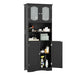 The cabinet is designed with 2 frost tempered glass doors for extra protection and elegance, making it suitable for various places, such as bathrooms, living rooms, bedrooms, etc. It features both hidden and open storage space, including 1 glass-door cabinet, 3 compartments, and 1 double-door cabinet. Meanwhile, the storage cabinet has 2 active shelves, which is adjustable in 3 positions. You can adjust the active shelf height according to your needs. More importantly, the anti-toppling system allows for added safety and stability. If you are looking for such a product, do not hesitate to buy it! Different Storage Options: The bathroom cabinet is designed with 1 glass-door cabinet, 3 open compartments, and 1 double-door cabinet, allowing you to hide or display a variety of items. It can store towels, cosmetics, skin products, toiletries, or ornaments. 3-Level Adjustable Shelves: There are 2 adjustable shelves behind the doors. Each active shelf has 3 heights to fit items of different heights. The distance between each level is 3.3cm(upper shelf) and 6.5cm(lower shelf). If needed, you can also remove the shelves for higher storage space. 4-Door Bathroom Cabinet: 2 frost tempered glass doors and 2 ordinary doors not only protect the inside essentials, but also bring a touch of elegance to your room. Moreover, the convenient knobs ensure easy door opening. Reliable Anti-toppling System: In addition to heavy-duty legs, the bathroom cabinet is also equipped with the anti-toppling system to secure the storage cabinet to the wall for higher safety and sturdiness. Thus, the cabinet is not easy to collapse or wobble. Versatile Uses and Easy Cleaning: Modern style and simple color make it a wonderful addition to your bathroom, living room, bedroom, and more. Additionally, the smooth surface is super easy to clean, saving your time and energy.