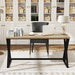 With a 150 cm spacious tabletop, the computer desk offers ample room for your work gear and decorative items. The 40 mm thick tabletop is built to last and easy to maintain. It features a robust metal frame that is capable of supporting up to 95 cm, with added stability on even uneven floors thanks to adjustable foot pads. Enhanced comfort is provided by an integrated crossbar which serves as a footrest and contributes to the desk’s stability. Stylistically, the executive desk combines a rustic wood grain finish with a chic black frame, making it a perfect fit for both home and professional settings! Spacious Work Area: Enjoy ample space for productivity and creativity with the 150 x 60 cm desktop, perfect for multitasking through your workday. This office desk accommodates multiple monitors, essential gadgets, and stationery with room to spare. Robust Build Quality: Designed with a heavy-duty metal frame featuring a double triangle structure, this computer desk confidently supports up to 95 kg. Its adjustable foot pads ensure stability even on uneven floors. Thick Board & Low Maintenance: The PC desk’s 40 mm thick tabletop is built to last and withstands daily wear and tear with ease. Its smooth finish not only adds to the aesthetic value but also makes cleaning hassle-free. Enhanced Comfort: Experience enhanced comfort with a cleverly integrated crossbar that not only fortifies the executive desk’s stability but also doubles as a footrest. The spacious area under the desk allows for comfortable leg movement. Stylish Design Elements: Add a touch of rustic elegance to your space with the beautifully textured wood grain finish. Paired with a chic black frame, this industrial desk complements both home and professional environments, seamlessly blending with a variety of styles.