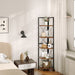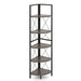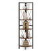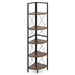Designed to fit snugly into corners, this 160 cm tall bookshelf optimizes space with its corner structure, ideal for locations that demand efficient use of every square inch. Featuring sturdy metal and wood construction, and an X-shaped bracket, the rustic standing bookshelf is stable, rustproof, and deform-resistant for long-time uses. Equipped with anti-tip fittings, the bookcase can be anchored to the wall without wobbling or tipping. The utility of this shelving unit extends beyond traditional uses. It effortlessly adapts as a glamorous plant stand on your balcony, a distinctive display area in your living room, or a practical storage solution in your kitchen. Spacious 5-Tier Storage Shelves: Expand your storage and display options with this 5-tier corner bookshelf. The bookshelf boasts a 5-tier storage space with wood top trays, providing large storage spaces to place books, photo frames, potted plants, storage boxes, aromatherapy, decorations, etc. Sturdy Frame with Wood Board: Built with strength at its core, this bookshelf features a heavy-duty metal frame reinforced with X-shaped brackets, ensuring stability and long-term use. The thickened board shelves provide robust support for your precious items, making this a reliable structure for your home or office. Maximize Corner Space: Utilize corner design with this 5-tier corner shelf, specifically engineered to fit snugly into right-angled spaces. This transformative storage rack not only saves valuable floor space but also aesthetically enhances any room, be it the kitchen, balcony, or bedroom, turning dead zones into useful areas. 2 Anti-Toppling Kits: Safety is paramount, which is why this display shelf includes 2 anti-toppling kits to securely fix the bookshelf to the wall, adding an extra layer of stability and safety for you and your family. The extra adjustable foot pad also helps maintain balance on uneven ground, ensuring your items remain in place. Multifunctional Uses: Beyond its primary function as a storage rack, this versatile shelf can also serve as a plant stand or a display shelf for showcasing decorative pieces. Suitable for various environments, from kitchens to bedrooms, it enhances space utility and decor, proving itself as an indispensable addition to your furniture collection.