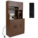 Enjoy ample space with a pantry cabinet designed to cater to all your storage needs. The combination of flip-up cabinet, open shelf, wide countertop, and slide-out drawer keeps your kitchen essentials neatly organized. Featuring 3 adjustable shelves in the cabinets, this piece organizes everything from kitchenware to spice jars. Together with stemware rack, the pantry cabinet is a stylish solution to keep glasses accessible. Need to charge but the nearest outlet is far away? This cupboard is equipped with charging station for added convenience. Safety is considered with the inclusion of anti-tipping kits, ensuring the cabinet remains stable and secure. This freestanding buffet cabinet is an ideal addition to your kitchen or dining room, bringing a streamlined organization in an elegant way. Bullet Point: Abundant Storage Space: This pantry cabinet features a flip-up cabinet and an open shelf for easy access, paired with a wide countertop for organizing kitchen appliances. The built-in wine glass holder safely secures your stemware. Also, the convenient drawer, 2-door cabinet, and single door cabinet keep kitchenware and dinnerware organized. Flexible Storage Solution: The top cabinet comes with a 3-position adjustable shelf, while the bottom cabinets boast 5-position adjustable shelves, giving you the flexibility to customize storage according to your requirements. Convenient Charging Station: Stay connected while cooking or entertaining with a built-in charging station in this freestanding buffet cupboard. There are 2 outlets, 1 USB port and 1 type-C port for keeping devices powered and accessible. Use with Safety & Stability: Designed for stability and safety, the kitchen storage cabinet includes 2 anti-tipping kits to securely anchor it to the wall, making it a reliable addition to homes with children or pets. In addition, thickened base adds extra stability. Aesthetically Pleasing Design: This modern microwave cabinet complements any home style. Also, you can utilize it as a buffet cabinet in the dining area, a cupboard in your kitchen, or as a storage organizer in your living room, enhancing the aesthetic while providing practical use.