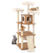 Our 168cm tall and large wooden cat tree could transform your cat’s living space into a paradise of comfort and amusement. It comes with 3 comfy top perches, a private condo, a cozy hammock, and 2 large platforms, ensuring that your furry companions can lounge in style and relaxation. The included padded plush cushions offer ultimate comfort to pamper your lovely kittens, as well as detachable and machine washable, making cleaning a hassle-free task. More than that, it includes 6 sisal scratching posts, a scratching and climbing ladder, complemented with 3 dangling balls with bells, which could engage and entertain your pet, keeping them active and healthy. Let your cat explore, climb, and play across 8 engaging levels, providing a safe and enjoyable environment for your beloved pet. Bullet Points:Multiple Resting Spots: This 168cm tall wooden cat tree includes 3 large padded top perches, allowing 2-3 cats to lounge and overlook at the same time. And there is a private cat condo for napping, and a cozy hammock that gives your cat a sense of security. Add More Fun: The cat tower is equipped with several full-wrapped sisal scratching posts, and a 2-in-1 scratching and climbing ladder, which are designed to help cats sharpen claws and keep them active. Additionally, it features 3 interactive plush dangling balls with bells to keep your cat entertained and mentally stimulated. Comfy and Reliable Materials: Featuring ultra-soft padded cushions covered in skin-friendly plush fabric, this cat furniture brings warmth and ultimate comfort to your lovely cats. The scratching posts are covered in natural sisal ropes, which are scratch-resistant, wear-resistant, safe and healthy. Easy Maintenance: All cushions of the cat tree are detachable and machine washable, and it adopts smooth and waterproof wood boards, making maintenance a breeze. Additionally, the condo features cat holes with sealed edges, which could effectively prevent fur sticking. Multi-Layer Fun: The luxury cat furniture measures 58 x 58 x 168 cm (L x W x H) and comes with 8 layers for cats to climb up and down. With its modern and stylish appearance, it could also seamlessly blend with your home decoration, adding a touch of sophistication and elegance.