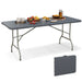 Made from premium HDPE material, the 3.5 cm-thickened tabletop withstands long-term outdoor use. Measuring 180 x 74 cm, the table comfortably seats up to 8 people, which is perfect for family or friend gatherings. Moreover, the table is supported by heavy-duty metal legs, ensuring stability and 160 kg load capacity. For easy storage and transport, it folds securely with safety locks. The versatility extends from picnics to kitchen use, making it an ideal addition to any setting. Enhance your outdoor gatherings with this reliable folding table, designed for convenience and longevity. If you are looking for such a product, do not hesitate to buy it! Premium HDPE Material: The patio table boasts a weatherproof HDPE tabletop which is sunproof, water-resistant and anti-fading for long-lasting outdoor use. Moreover, the honeycomb construction on the back of the tabletop ensures higher stability. 180 x 74 cm Large Tabletop: The spacious 180 x 74 cm tabletop provides generous space for dining, working, or socializing, ensuring everyone has enough room for their dishes and drinks. Additionally, the wood-like texture of the table surface brings more elegance. Heavy-Duty Metal Legs: Reinforced with robust metal legs which is well-coated, anti-deformation and super sturdy, this folding table features 160 kg max load. Additionally, the anti-slip footpads make the table stand more stably. Secure Folding & Expanding: Equipped with a safety lock and joint locks, the table folds in half with high security for easy storage and transport. This portable folding table with 11 kg net weight will provide much convenience for you. Versatile Folding Table: With high functionality, this patio table meets multiple demands for relaxation, whether for picnic, camping, kitchen or study. The convenient carrying handle makes it easy to move around wherever needed. Overall dimension: 180 x 74 x 74 cm (L x W x H). Folding dimension: 90 x74 x 8 cm (L x W x Thickness). Note: The table is slightly raised in the middle to prevent heavy objects from depressing the tabletop.