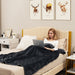 Enjoy cosy life with our heated electric blanket! As winter and the new year are upcoming, a warm blanket is essential for you and your families. The electric blanket features a powerful PTC heater that delivers heat rapidly and evenly, while providing overcurrent and overheat protection. Moreover, 10 heat temperatures and 9 hours auto shut-off is available with an easy-to-operate controller. So your diverse needs will be satisfied and your restful sleep will be ensured. And the heated throw blanket is well crafted with double-sided flannel for a more comfortable experience. With our flannel electric blanket, you could be wrapped in warmth for the whole winter. Besides, the large electric blanket throw is washable with hands and machine for simple cleaning. Thus, it will be a warm-hearted gift for your parents or friends! Dual Control Remote: The electric blanket throw is equipped with a remote control that allows you to set the heating temperature from 25-46°C in 10 levels to meet your different needs. In addition, you can pre-set the auto-off time so you don't have to get up at midnight. And the remote control has a clear digital screen for you to observe the result of the setting. Safe Overheat Protection and Efficient Heating: The heated throw has used advanced PTC heater that covers a large area to ensure even distribution and rapid heating in a short time. What's more, our electric blanket has overheating and overcurrent protection so that you can use it with confidence! Easy to Use and Wash: Once connect the coupler and power supply, the heated blanket will start heating quickly. Besides, our comfortable electric throw blanket is available to wash with hands or machine for easy care. And please detach the power connection before washing. Note: Do not dry clean, bleach or iron. Applicable for Anywhere: Since the electric blanket throw is easy to use, you will enjoy instant heat and warmth wrapped around you anytime and anywhere. Hence, the heated throw can be used as a sofa blanket, office blanket or bed throw to bring you super relaxation while watching TV, reading, playing games, working or studying. Ideal Gifts for Beloved Ones: Made of super cosy double-sided flannel, our electric over blanket is skin-friendly with a gentle touch, so as to bring lasting warmth and luxurious experience in the cold winter. Therefore, the heating throw will be the perfect gift for a beloved one or someone with cold hands and feet.