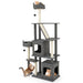 Our large and tall cat tree measures 86 x 40 x 180 cm (L x W x H), which not only serves as a fun activity center for your pets but also enhances your home decoration, adding a touch of sophistication to your living space. Designed with both fun and function in mind, the tree features a solid base reinforced with an anti-toppling device and an additional support post to ensure stability during even the most vigorous play. Cats can leap and bound across 7 levels of fun, or snuggle into one of 2 condos with detachable walls, each offering a private and cozy retreat. The pinnacle of comfort is achieved with a top perch, side bed, and padded platforms, cloaked in breathable and skin-friendly fabrics, making it inviting throughout the year. Further indulging your cat’s instincts, this tree includes 4 scratching posts and a 2-in-1 sisal scratching board and ladder that not only entertain but also keep their claws healthy. To top it off, plush hanging balls with tinkling bells offer endless entertainment, making this cat tree a must-have for ensuring your pets are happy, active, and secure in their luxurious playground. Bullet Points:Multiple Resting Spots: This 180cm tall cat tree comes with 2 comfortable cat condos for private napping, a cozy top perch for sunbathing, and a snug side cat bed for curling up in comfort throughout the day. It not only serves as a playground for your furry friends but also doubles as a stylish home decoration piece. Enhanced Playtime: Equipped with 4 fully-wrapped scratching posts, complete with a 2-in-1 sisal scratching board and ladder, the cat tower is designed to encourage natural scratching habits while protecting your furniture. Moreover, it includes 2 plush dangling balls with bells to keep your cats entertained and active. Enhanced Stability and Safety: The cat furniture is designed with an anti-toppling device to secure the tree on the wall, enhanced by a large base with an additional supporting post, providing a secure and stable environment for your cats to climb, jump, and play without any risks of tipping over. Comfy Lying Experience: The skin-friendly and breathable fabric covered on the jumping platforms provides pleasant and hair-resistant resting surfaces, while the scratch-resistant linen fabric on other sections provides cool and comfy surfaces for year-round use. All platforms are padded, treating your cats to ultimate comfort. Detachable Condo Covers: The walls of 2 condos are connected by hook and loop fasteners, making them easily detachable. This feature enhances ventilation, simplifies cleaning, and satisfies diverse needs. Additionally, the cat tree is designed with 7 layers for cats to climb up and down, providing multi-layer fun.