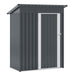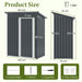 Apart from its primary function of storage, the outdoor storage shed can also double up as a cozy pet house or garbage shed, providing a safe and warm environment for your furry companions. Thanks to the tilted roof design, the garden shed prevents rusting that often results from rainwater accumulation. Moreover, a lockable door with latch(padlock not included) acts as a barrier to keep unwanted guests from entering the shed. Meanwhile, the patio storage house features 2 air vents to keep the inner space dry. The use of color-coated sheet steel and galvanized steel ensure resistance to outdoor elements. More than that, the outdoor tool room is reinforced with vertical tubes and external foundation for enhanced wind-proof performance. Additionally, 4 ground stakes are included to help anchor the metal tool shed to the lawn. To prevent any accidental injuries or scratches from sharp edges or pieces, 2 pairs of gloves are provided. Bullet Points: Versatile for Various Occasions: The 181 x 153 cm outdoor storage shed can be easily converted into a utility tool room or a garbage shed, catering to various needs as required. By using the shed to conceal your waste, tools, and equipment, you can efficiently reduce clutter in your yard, patio, or garden. Weather-proof Sloped Roof: The clever tilted roof of the garden shed not only adds a touch of architectural elegance, but also effectively prevents rusting caused by water accumulation. Crafted with color-coated sheet steel, the pitched roof is waterproof and sun-proof for extended outdoor use. Enhanced Stability and Durability: The heavy-duty storage house is reinforced with sturdy vertical tubes and an external foundation, enhancing the overall strength and stability of the structure. Moreover, the protective plastic corners and screw covers are less prone to be damaged for longevity. Excellent Security and Ventilation: Featuring a lockable door(padlock required), the utility tool room will offer protection for your valuable items stored inside. Plus, the patio storage house boasts 2 air vents to promote ventilation, keeping the interior space dry and free from mustiness. Multiple Fixation Options: Thanks to the anchoring base, the outdoor tool shed can be fixed on grassland with 4 included ground stakes, fixed on cement floor with expansion screws(not included) or fixed on wood floor with wood screws(not included) for added stability. Plus, 2 pairs of gloves offer protection against sharp edges during assembly or use.