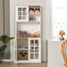 The tall buffet cabinet fully utilizes your living space while adding large storage. The upper hutch includes an open shelf and an enclosed cabinet. Especially, there is a 3-level adjustable shelf (6.5 cm/gear). Thanks to the wide countertop, you can keep small kitchen appliances within reach. Also, the pantry has a 2-door cabinet, which offers large space for kitchen supplies. Moreover, all doors are made of tempered glass for durability. With anti-tipping kits, the storage cupboard will be firmly attached to the wall. During multi-scene uses, its anti-slip pads will avoid scratches on the floor. By the way, the sideboard cabinet comes with a painted process, which helps gain good water resistance and makes cleaning easier. If you are looking for a tall buffet cabinet like this, do not hesitate to place an order! More Shelves for Classifying: To keep clutter at bay, the buffet cabinet has a 2-tier open shelf and 2 enclosed cabinets with tempered glass doors, one at the top and one at the bottom. Of course, they're helpful to keep your towels, spice jars or cooking gadgets handy. Plus, there is a 3-level adjustable shelf (6.5 cm/gear), easy to change its position to match different items. Functional Open Countertop: The standing pantry cabinet contains a multi-purpose countertop of 80 x 36cm (L x W), where you can place a microwave, coffee maker or toaster. Also, open space allows to display of vegetables and fruits, making it easier to prepare simple dishes. After a busy time, diverse stains will be quickly removed, as its surface is considerately painted for ideal water resistance. Secured Anti-Tipping Device: Anti-tipping kit avoids dangerous tipping over, so the standing buffet cabinet comes with 2 to eliminate safety hazards. Besides, it is pretty easy and quick to install them at the back of the hutch with a detailed manual. Moreover, the sideboard cabinet has extra anti-slip pads as well, designed to keep the floor from being scratched. Farmhouse Style and Strong Frame: The tall buffet sideboard with hutch is crafted of thick boards which act as safeguards for high sturdiness and durability. So the overall load capacity reaches 280lbs. In greater detail, the top and countertop are decorated with wood grains, adding a natural farmhouse style and capable of coordinating well with various home finishes. Versatile Use and Good Details: As you want, the kitchen cabinet can be turned into a sideboard, a storage organizer or a pantry. With a decent product dimension of 80 x 37 x 183 cm (L x W x H), a small space will be enough. More, other well-made details show our care as well. Its doors are equipped with metal hinges and knobs, offering easy access to stored items.