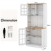 Colour: White/Black Material: MDF, Tempered Glass Overall Dimension: 80 x 37 x 183cm (L x W x H) Size of Upper Enclosed Cabinet: 37 x 24 x 50cm (L x W x H) Height of Middle Open Space: 50cm Size of Countertop: 80 x 36cm (L x W) Size of Lower Shelf (Each): 75 x 33 x 36cm (L x W x H) Adjustable Distance of Each Gear: 6.5cm Load Capacity of Each Shelf: 15kg Load Capacity of Countertop: 45kg Net Weight: 35kg Package Includes: 1 x Kitchen Buffet Cabinet 1 x Instruction Manual
