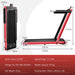 Stay active, stay motivated with our foldable treadmill! This under desk treadmill features a 7-layer anti-slip and shock-absorbent running belt for comfort and safety. Operating quietly yet powerfully, the walking treadmill is powered by a 2.25 HP brushless motor, supporting weights up to 120 kg. The LED display shows speed, time, distance, and calories burned, helping you stay on top of your progress. With adjustable speeds from 1-12 KPH, you can switch between walking, jogging, and running modes to suit your fitness needs. The watch-like remote control allows for easy adjustments, while the built-in speaker and compatibility with popular fitness apps offer a customizable and interactive training experience. When not in use, this foldable treadmill can be conveniently moved and stored. Bullet Points: Blends Security with Comfort: This under desk treadmill boasts a 100 x 40 cm spacious running area, where there is an anti-slip running belt with a 7-layer construction for unparalleled comfort. Moreover, 6 shock absorbers reduce impact on your joints, ensuring a safe and pleasant workout experience. Powerful yet Silent Operation: Powered by a 2.25 HP brushless motor, this foldable treadmill provides a reliable performance and supports a weight capacity of up to 120 kg. The motor operates at <75dB low noise, allowing you to exercise without causing disturbance, ideal for home and office use. Smart Remote & LED Display: You are able to monitor your progress with the clear LED display that shows speed, time, distance, and calories burned. Adjust settings with the watch-style remote control featuring mode and mute buttons along with 3 countdown modes for a customized exercise session. Built-in Speaker & APP Control: With a high-quality speaker, the walking treadmill can keep you engaged and motivated by streaming your workout playlists. By connecting with popular fitness apps like Gymax, Kinomap, and Zwift, a customized and enhanced training experience is available. Foldable & Portable Design: This walking pad ensures space-saving storage with its easy-to-fold design and 13cm folding height, while the transport wheels simplify movement. With adjustable speeds ranging from 1-12 KPH, the treadmill allows for working mode, walking mode, jogging mode, and running mode.