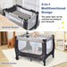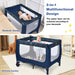 Coming with a detachable bassinet and comfortable mattress, this baby crib combines baby activity center and baby bassinet bed, meeting your different needs. Also, the baby playpen is designed with 2 rolling wheels with brakes, allowing you to move it from room to room easily. The mesh cloth not only ensures air circulation in the baby playpen, but also provides better observation for parents. Made of stable steel frame, the baby playpen is capable for long time use. Following detailed instructions, the installation is easy and quick. Most importantly, you can fold it quickly for convenient storage and carrying. 4-Side Mesh Cloth Design: The mother's biggest fear is that the baby will get hurt without her noticing. However, with this baby pen, this problem can be solved smoothly. The 4-sided mesh cloth design can not only make the air flow smoothly, but also facilitate parents to observe the baby's movements at any time. Safe and Non-toxic Materials: The baby play bed is made of high-quality and durable Oxford cloth, which will not harm the baby's health, and can be easily cleaned using only a damp cloth. Besides, the PP material without any toxins or chemical smell is friendly and healthy for little babies. Flexible Wheels with Brakes: There are two universal wheels at the bottom of the baby playard so that it can be moved easily. There is no need to worry about the displacement of the baby's playard during use, as the brakes on the wheels can perfectly secure the entire bed. Stable Structure and High Load-bearing Capacity: When designing this crib, the first thing we consider is undoubtedly the safety of the baby. Therefore, we have designed a scientific 7-point load-bearing structure at the bottom, which can increase the load-bearing capacity of the cot to 15kg and make it more stable. Portability and Multi-purpose Design: In order to improve the portability of the baby bed, we have specially equipped a carrying bag that can accommodate the folded bed and iron tube. Therefore, you can easily carry or move this portable crib to the bedroom, living room, children's room or outdoors.