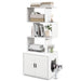 Our cat litter box enclosure will bring spacious and clean living environment to you cats! With an enclosed cabinet, cats can poop in a private shelter. Moreover, the cat litter box enclosure is designed with 3 vented holes to minimize unpleasant odors. The pet cabinet is also a storage marvel. The 3 geometric open shelves offer stylish & practical storage solution, allowing you to store litter, scoops, and your daily essentials. Furthermore, the tall cat cabinet comes with an anti-tipping kit that ensures it remains stable, preventing any accidents caused by tipping over. Also, 4 adjustable foot pads will keep the large cat house stand stably. With unique geometric open shelves and rustic wood grain, the decorative pet house will add a touch of charm to your space. Let Cats Enjoy Potty Time: The enclosed cabinet provides a dedicated space for cats’ private time and a perfect solution to minimize litter tracking. Additionally, the inclusion of 3 vented holes in the cabinet allows for proper ventilation, minimizing any potential smells that may arise. Practical Storage Solution: The 3 large open shelves and the wide cabinet top offer roomy space to keep your decorations, books, storage baskets or pet supplies within easy reach. Therefore, the litter box enclosure furniture will keep a well-organized pet care corner. Stable and Safe Structure: The cat cabinet with storage features an anti-tipping kit that ensures excellent stability and prevents accidents that may occur due to tipping over. Additionally, with 4 adjustable foot pads, the large cat house will stand firmly on any surface. Stylish and Industrial Design: Featuring aesthetically pleasing geometric shelves, the pet house furniture will be the focus point wherever you place it. Moreover, the rustic wood-like surface will bring a warm tone to your space. Stylish and Simple Design: Featuring aesthetically pleasing geometric shelves, the pet house furniture will be the focus point wherever you place it. Moreover, the simple white finish can effortlessly complement different decorative themes. Compatible Litter Box Size: The overall dimension of the large private cat washroom is 60 x 45 x 142 cm(L x W x H). The inner size of the enclosed cabinet is 56 x 45 x 42 cm(L x W x H). Please make sure the size of your litter boxes is smaller than it before purchase.
