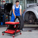 This 2-in-1 folding creeper seat will help you a lot in vehicle repairment. With the convenient locking pin, the car creeper can be freely changed between the floor creeper and the creeper seat. The universal wheels save much of your effort to move to the places you want. Moreover, the creeper seat is quite comfortable to sit with the PVC leather and padded design. And the heavy-duty and rustproof metal frame ensures high stability and durability. Therefore, this multifunctional creeper seat will be a perfect addition to repair shop, garage or factory for vehicles. Bullet Point:2-in-1 Convertible Design: This folding car creeper can be easily converted from a floor creeper to a creeper seat without tools. Therefore, whether you want to lie down to repair the bottom of the vehicle, or just sit to maintain the car, this 2-in-1 creeper seat will always satisfy your demands.Heavy-Duty Metal Frame: The main frame of the car creeper is constructed of heavy-duty metal, which is not only anti-deformation and sturdy, but also rustproof. Furthermore, the solid screw connection highly strengthens the overall structure. The weight capacity is up to 150 kg.Cozy Padded PVC Seat: Designed with padded seat, the rolling creeper offers you optimal comfort to sit or lie down. And the surface is made of PVC leather, which is tear-resistant and wearable ensuring long-lasting service life.Wide Applications: Equipped with 6 universal wheels, the creeper seat can be easily moved anywhere, saving much of your effort. The flexible mobility and high functionality make the creeper ideal for different occasions, such garage, repairing shop and so on.Simple Assembly: Coming with an easy-to-follow instruction and all necessary accessories, this creeper seat is quite simple to be assembled. Plus, as the PVC leather surface is smooth and waterproof, the daily maintenance is quite simple, too.