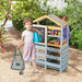 Crafted from sturdy fir wood, this outdoor play kitchen is built to last while ensuring safety. It offers various activities for children to enjoy with a mud kitchen and a grocery store. The BBQ grill comes with food and tool accessories, making it easy for kids to pretend they are cooking a delicious meal. With a blackboard, children can write or draw to their hearts’ content. The sink, oven, open shelves, mesh bag, and metal baskets, create a realistic cooking and shopping experience for kids in a tidy and organized play area. Suitable for children aged 3+ years old, this outdoor kitchen playset makes for a perfect gift that promotes playtime. Dual Side, Multiple Fun: The double-sided design combines a mud kitchen with a BBQ grill on one side and a grocery store with a blackboard on the other. This innovative design engages your child’s creativity and entrepreneurial spirit, perfect for hours of imaginative play in the great outdoors. Sturdy and Safe Construction: Constructed with sturdy fir wood, the outdoor kitchen playset ensures long-lasting performance. The splinter-free surface alongside strong, secure connections safeguards little chefs during their culinary and commercial exploits, letting them enjoy worry-free playtime. Engaging Play Options: The 2 in 1 mud kitchen includes a sink for realistic water play, as well as an oven for a comprehensive cooking experience. With open shelves, a mesh bag, and metal baskets for storage, children can keep their play area organized and tidy. Plenty of Accessories: For added convenience, this double-sided mud kitchen comes with barbecue ingredients, tong and spices. All these accessories will provide a more immersive play experience for kids. Ideal Gift for Boys and Girls: The outdoor grocery store playset is an ideal gift for children above 3 years old, offering a dynamic way to encourage imagination, creativity, hands-on ability, and social skills.