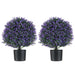 Labor-saving greenery for your living space! Why choose our artificial lavender ball tree? The simulated lavender blossoms are delicately scattered among the green leaves, creating a captivating display that breathes life into any space. Also, the realistic branches and dense faux grass create a striking visual impact. The high-quality PE material utilized in our artificial topiary plants is chosen for its non-fading and sun-proof characteristics, making it perfect for outdoor spaces. Moreover, the material is completely smell-free for indoor decoration. With a cement-filled pot, the fake plant is not easy to wobble. The flexible branches allow for effortless adjustments, ensuring that you can easily shape the potted faux shrub plant to the best display state. Unlike real plants, this artificial tree requires no sunlight and no watering, making it a hassle-free way to add a touch of greenery to any space. Coming in to set of 2, the potted artificial plants are ideal for embellishing spaces such as front porches, restaurants, homes, and more. Bullet Point: Enchanting Lavender Blossom: The harmonious blend of vibrant lavender blooms and verdant foliage is a visual symphony that transforms your space into a botanical masterpiece. Additionally, the ball shape design, simulated branches and faux grass create an inviting appearance that is sure to impress. Sun-proof PE Material: The artificial topiary plants are made of high-quality PE material that is non-fading and sun-proof, making it applicable to outdoors. Additionally, the PE material is safe for indoor use without any unpleasant scents. Sturdy Cement-poured Pot: The flower pot of our fake greenery is filled with cement, providing stability and ensuring that the tree remains upright even in the face of minor impacts. For outdoor settings, we recommend pairing the plant with weighted planters to prevent toppling. Hassle-free Maintenance: Unlike real plants, ours artificial lavender topiary ball tree will not affected by weather and temperature. Furthermore, it will maintain its vividness without the need of watering or sunlight. Note: If individual leaves fall off, they can be reinserted. Enhance the Style of Any Settings: The set of 2 potted plants will add a touch of nature-inspired charm wherever they are placed, such as welcoming front porches, homes, and trendy restaurants. You can gently manipulate the head of the tree and adjust the leaves to the best display state.