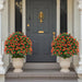 Impressive decoration for various settings! The simulated red roses are delicately scattered among the green leaves, creating a captivating display that breathes life into any space. Also, the realistic branches and dense faux grass create a striking visual impact. The high-quality PE material utilized in our lifelike artificial potted plants is chosen for its non-fading and sun-proof characteristics, making it perfect for outdoor spaces. Moreover, the material is smell-free for indoor decoration. With a cement-filled pot, the fake plant is not easy to wobble. The flexible branches allow for effortless adjustments, ensuring that you can easily shape the potted faux shrub plant to the best display state. Unlike real plants, the artificial tree requires no sunlight and no watering. Moreover, these potted fake plants will not affected by climate and keep vibrancy for years. Coming in to set of 2, the potted artificial plants are ideal for embellishing spaces such as front porches, restaurants, homes. Bullet Point: Lifelike & Vivid Design: The ball shape bushes with lifelike roses and gradient green leaves will add a pop of color to your space. Additionally, the realistic textured trunk and dense grass of our artificial plants mimic the intricate details found in nature. Sun-proof PE Material: The artificial topiary plants are made of high-quality PE material that is non-fading and sun-proof, making it applicable to outdoors. Additionally, the PE material is safe for indoor use without any unpleasant scents. Sturdy Cement-poured Pot: The flower pot of our fake greenery is filled with cement, providing stability and ensuring that the tree remains upright even in the face of minor impacts. For outdoor settings, we recommend pairing the plant with weighted planters to prevent toppling. No Trivial Maintenance: Unlike real plants, ours artificial rose topiary ball tree will not affected by weather and temperature. Furthermore, it will maintain its vividness without the need of watering or sunlight. Note: If individual leaves fall off, they can be reinserted. Enhance the Style of Any Settings: The set of 2 potted plants will add a touch of nature-inspired charm wherever they are placed, such as welcoming front porches, homes, and trendy restaurants. You can gently manipulate the head of the tree and adjust the leaves to the best display state.
