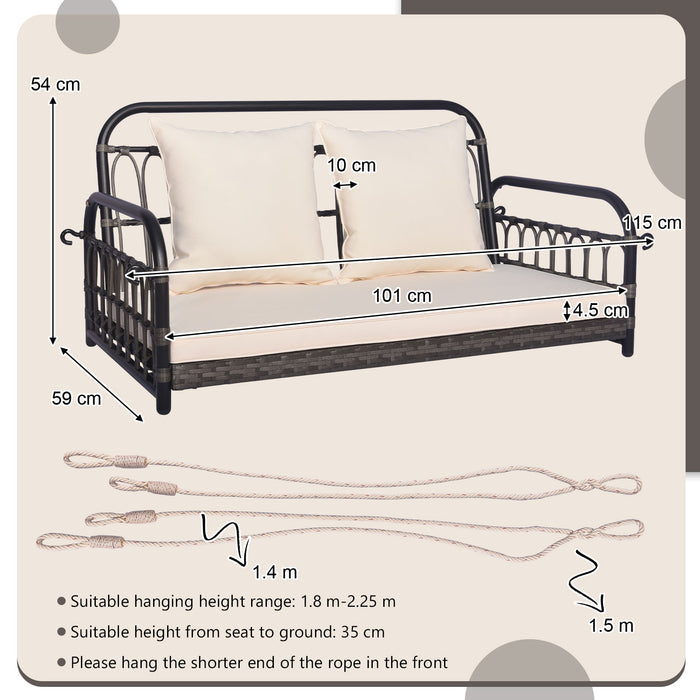 This swing chair's versatile design makes it an ideal accoutrement for a variety of outdoor settings, be it your porch, balcony, or garden. It comes with durable hanging ropes and all the necessary fixtures, ensuring a secure and straightforward installation. Whether perched on your patio or nestled in a quiet corner of your yard, this chair is sure to become a cherished locale.