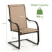 These 2 patio C-Spring motion chairs are an excellent choice for any outdoor space. Whether you want to relax in the backyard, porch, or poolside area, these high back chairs are sure to enhance your outdoor experience. One of the standout features of these chairs is the cozy and breathable seat fabric. Made from high-quality materials, the seat fabric provides a comfortable and breathable seating experience. Plus, the C-spring motion adds an extra layer of comfort, which allows you to gently rock back and forth. The heavy-duty metal frame of these chairs further adds to their durability and stability. You can rest assured that these chairs will maintain their structural integrity, even after years of use. If you are looking for outdoor chairs, why not take this 2pcs patio C-spring chairs into consideration? C-Spring Motion Chair: With unique C-spring design, each chair rocks 15° back and forth, which allows you to enjoy slight body swaying for more comfort. Plus, the ergonomic backrest, curved armrests and sturdy back support offer you better sitting experience. High-Grade and Cozy Seat Fabric: The seat and back of the chairs are made of premium fabric which is tear resistant and anti-fading for long-time outdoor use. Moreover, the seat fabric is also breathable and quick-drying. Stable Metal Frame: The 2 patio chairs are firmly supported by heavy-duty metal frame, resisting to deformation, bending and rust. Also, the adjustable footpads highly improve the overall stability. Each chair features 150 kg max load. Various Applicable Occasions: The 2 chairs with elegant appearance and high-level comfort will be a perfect choice for your outdoor relaxation. You can use them for endless coziness in your backyard, poolside, balcony and so on. Assembly Required: The clear instruction coming with the chairs will help you finish the assembly in high efficiency. And the chairs with suitable size is ideal for most patio tables. Overall dimension: 71 x 62 x 102 cm (L x W x H).