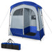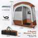 Strong fiberglass poles support the dressing tent that is covered with 190T polyester fabric with silver coating, so the toilet tent shows great sturdiness and durability. Also, it's sun-proof and drizzle-proof. Basically, the privacy shelter tent can accommodate 2 adults and inner zippered door ensures 2 independent rooms. When you're taking a shower, the top hook can hold a drip nozzle, pockets can store toiletries and 2 clotheslines keep clothes from getting wet. Bottom floor is crafted of PE and mesh, making itself very durable and perfect to drain excess water. After shower, you can open 3 meshed windows and 2 zippered doors to discharge water vapor quickly. Also, top rain fly is removable, designed for more ventilation or privacy. We offer you metal stakes and ropes to enhance overall stability. The dressing tent can be folded into a compact size and stored in the carry bag for storage or portability. Finally, the whole installation is easy and without any tools. Inviolable Privacy and Versatile Use: With a decent size of 83" x 42" x 83" (L x W x H), the shower tent is roomy and suitable for 2 people. Importantly, its closed design can well defend your privacy. Inside, zippered door evenly divides space into 2 parts, allowing you to use a room for shower, while another for dressing or toilet. Interior Storage and PE Meshed Floor: Find a proper place for toiletries! The tent has a hanging hook for shower drip nozzles, 2 pockets for shampoos & 2 clotheslines for towels. Also, its bottom floor is made of durable PE and breathable mesh, making bath water flow out timely to ensure hygiene. Ventilated Door, Window and Skylight: A removable rain fly is offered for more privacy or ventilation. Besides, the shower tent contains 3 more meshed windows, which feature smooth zippers and 3 can be rolled for tidy organization. Also, you can open 2 doors with 2-way zippers to discharge water vapor quickly and make the interior dry. High Strength and Weather Resistance: The dressing tent consists of fiberglass poles, which is why it perfectly resists to deformations. Also, there are multiple fixations for stability, including metal stakes & ropes. Plus, with 190T silver-coated polyester fabric, the shower tent is sun-proof and drizzle-proof. However, do not use it in extreme weather, such as heavy rain, snow, typhoon and so on. Setup in Seconds and Easy Portability: For your convenience, the tent has more details. The manual offers clear guidance and the whole installation requires no extra tools, super friendly to a new camper. Finally, the lightweight shower tent is fitted with a carry bag where you can store the folded tent of 25.5" x 6.5" x 6.5" (L x W x H) for easy storage or portability.