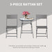Proudly presenting a no-fuss solution to outdoor decor, this set arrives fully assembled for immediate enjoyment. Crafted with materials that resist the whims of weather, you can comfortably leave it outdoors without worry. Should a spill occur, the glass tabletop wipes clean effortlessly, ensuring your bistro set remains pristine.