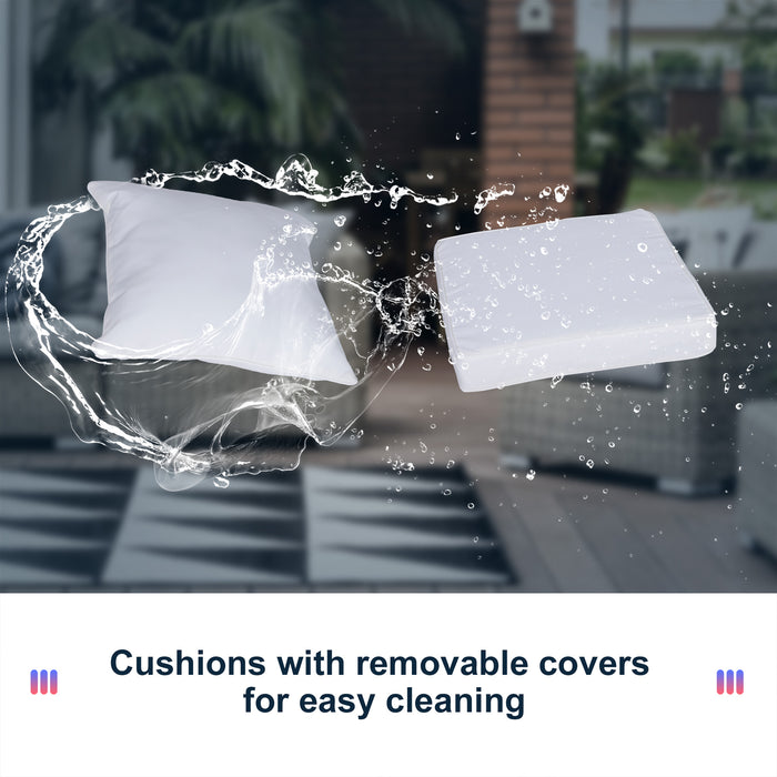 Every chair comes equipped with a plush 8 cm cushion, a perfect companion to leisurely afternoons. Designed with convenience in mind, the cushion covers are furnished with zippers, allowing for effortless removal and cleaning, maintaining freshness season after season.