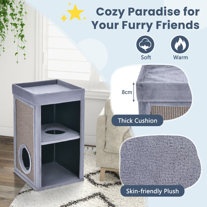 Immerse yourself in the ingenious design of our cat condo that provides not just one, but two levels of playful paradise. Each level is connected by an internal tunnel system tailor-made for your cat's exploratory nature. This allows for seamless movement between the tiers, perfect for climbing, hiding, pouncing, or simply lounging in their own private domain. Envision the joy as your cat discovers the spaciousness within, an ideal feature for homes graced with multiple whiskered inhabitants.