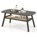 The splayed design ensures a stable base. With a spacious tabletop and lower shelf for storage, the center table is perfect for any room. Its farmhouse design and wood-grain surface add an elegant charm to your decoration. Plus, its user-friendly features, like a 10 inch bottom clearance for easy cleaning and protective foot pads for perfect floor protection, make it a practical choice for busy households. Keep Room Organized: The coffee table features a wide tabletop for drinks and decorations, while its 2-tier design includes an open shelf beneath to keep books, magazines, or blankets within easy reach. Robust Construction: Crafted with thickened splayed rubber wood legs, the center table provides a stable base and effortlessly supports up to 120kg. Ideal for daily use, this table promises longevity and robust support for all your essentials. Elegant Rustic Charm: Bring a touch of rustic elegance to your home with the cocktail table’s distinctive farmhouse design. The wood-grain surface paired with anti-fading PE rattan offers a chic, classy look that complements any decoration style. Versatile Use: The 100 x 55 x 45 cm (L x W x H) tea table is perfectly suited for the living room, bedroom, study, or any area in need of a functional yet stylish centerpiece. Its design combines both storage and display space for various needs. User-Friendly Design: The coffee table is designed with your convenience in mind. Featuring a 25cm bottom clearance, it allows for easy sweeping underneath, while protective foot pads safeguard your floors from scratches and damage.