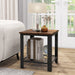 Add this piece to your furniture collection and enjoy both its utility and its charm! The side table comes with a square tabletop and mesh shelf that enhance storage and display space, keeping your room organized. Moreover, sturdy metal frame and adjustable foot pads promises stability and longevity, standing up well to daily use. Whether you are looking for a nightstand, a sofa side companion, or a stylish standalone piece, this 2-tier end table melds form and function beautifully, making it a reliable choice for your home. 2-Tier Storage Space: The top surface provides ample space for your daily essentials, such as lamps, books, or cups, while the lower mesh shelf offers additional storage space, perfect for magazines, or decorative items. Sturdy and Stable Structure: Supported by a heavy-duty frame, the industrial side table accounts for reliable structure with a total weight capacity of 100 kg. Additionally, adjustable foot-pads improve overall stability. Versatile End Table: This sofa side table fits neatly beside your couch or bed, serving as a convenient spot to keep your items within reach. With the size of 40 x 40 x 45 cm (L x W x H), the bedside table is ideal for any limited space. Unique Industrial Style: This 2-tier end table seamlessly blends functionality with industrial chic style. The rustic finish is complemented by a black metal frame that brings a touch of timeless elegance to any room. Easy Assembly: All necessary accessories and detailed instruction are tightly wrapped. You can put all parts together without effort. In addition, the smooth surface saves much time and effort in daily maintenance.