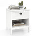 Enhance your living space with this side table boasting an elegant design that effortlessly complements various decoration styles. The faux cutout design on the drawer fronts adds a touch of class to the overall aesthetic. Enjoy the convenience of private drawers and open shelves, providing ample storage space for personal items, books, plants, and decorative pieces. Details of the nightstand showcase sophisticated workmanship: the stable structure features non-slip foot pads to prevent scratches and sliding, along with an anti-toppling device for added safety. Perfect for compact spaces, this coffee table can easily fit between sofas or beside your office desk. The smooth surface offers excellent water resistance, making cleanup a simple task. Seamlessly transition this multifunctional table from the living room to the bedroom as a nightstand, showcasing its versatility. Stylish Modern Design: With its elegant colors and clear lines, this table will match most of the decoration styles. What’s more, the drawer fronts come with a faux cutout design that adds a sophisticated touch to the overall look. Sufficient Storage Space: This side table will bring you extra storage space! The spacious top is great for picture frame or other decorative items, while the pull-out drawer with handle can store personal items. The lower open storage shelf is perfect for books. Stable Structure: The non-slip foot pads of the table not only prevent the floor from being scratched, but also keep the table from sliding. In addition, the table comes with an anti- toppling device to secure it to the wall for add stability. Compact and Versatile Storage Table: With its compact size of 45 x 40 x 50 cm, this coffee table won't take up too much space in your room. It can be easily placed between two sofas or next to the office desk. Of course, you can also put this storage table in the bedroom as a nightstand. Detailed Instruction & Easy Cleaning: The instruction manual will arrive with the package to help you to competent in the assembly. Furthermore, the smooth surface is burr-free and has a good water resistance, which is easy to clean.
