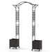 Colour: Black Material: PE-coated Metal, PP Product Dimensions: 207 x 40 x 250 cm (L x W x H) Each Planter Box Size: 40 x 40 x 50 cm (L x W x H) Interior Size of Each Planter Box: 36 x 36 x 37 cm (L x W x H) Net Weight: 11.5 kg Box Qty: 1 (May vary by batch) Package Includes: 1 x Garden Arch Trellis with Planter Boxes 1 x Instruction Manual