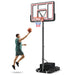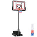Featuring a stepless, tool-free height adjustment from 225cm to the standard 305cm, this hoop and goal system accommodates beginners and pros alike. The robust 44 inch PC backboard is engineered for outstanding rebound and durability, paired with a regulation-sized rim for serious gameplay. With built-in wheels for easy relocation, this basketball system promises year-round indoor and outdoor fun. Stability is no question with its robust metal frame, all-round reinforcement and HDPE base, fillable with sand or water. For your convenience, an extra weight bag and a replacement net are included. With our basketball goal system, your child can stay motivated, making it the ideal present for fostering growth! If you are looking for such a product, do not hesitate to buy it! Easily Adjustable Height: With its innovative crank system, our portable basketball hoop features single-handed, tool-free adjustment. Free to set at anywhere between 7.4 ft(225cm) to the standard rim height of 10 ft(305cm), it accompanies your kids as they grow into teens and adults. Shatter Resistant Backboard: Crafted from shatterproof PC and equipped with impact absorbing spring, the strong 112cm backboard is designed for optimal rebound and shatter prevention in intense games. Plus, its 45 cm standard rim, suitable for size 7 balls, offers uncompromised training efficiency. Multifunctional Base: The heavy duty HDPE base is reinforced with 2 beams, forming a triangular structure for enhanced stability. You can fill it with 50 kg of water, 80 kg of sand or add another 50 kg with the included weight bag. A pit is also included for basketball storage needs. Portable Hoop System: Equipped with 2 built-in wheels, this basketball hoop and goal system is easily movable. Position it in your yard or at your driveway entrance to turn it into a hub of physical activity. During winter or bad weather conditions, you can effortlessly relocate it indoors to set up a personal basketball court. Gift for Kids' Growth: This height-adjustable basketball hoop makes an excellent Christmas or birthday gift for your growing kids and teens. It serves as a healthy alternative to electronic devices, encouraging them to stay active and enhance their motor skills. An replacement net is also included to extend the fun.