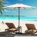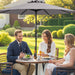 The outdoor umbrella is an essential addition for any sunny day! Designed to effortlessly cover wide areas, the large market umbrella is the perfect choice for enveloping outdoor dining tables, poolside loungers, and expansive patio spaces in comforting shade. Crafted from polyester fabric, the patio umbrella stands out for its exceptional durability and resilience to sun. Additionally, the canopy features a smart vented design, promoting airflow and stability. The entire structure is crafted from powder-coated metal, including the pole and eight 20% thicker sturdy ribs, ensuring your umbrella stands tall against the elements. Thanks to the smooth crank system, you can rotate the crank lift to open the umbrella with minimal effort. Also, the table umbrella can be quickly installed by connecting the 2 section poles. Built-to-last Canopy: The canopy of the market umbrella is made of premium polyester fabric, which is not only sun-protective but also repels water and resists wear, ensuring your patio umbrella looks new for seasons to come. Heavy Duty Construction: The patio umbrella is supported by a powder-coated metal pole, which is designed to minimize sway and maximize support. Moreover, the 8 thick umbrella ribs ensure a sturdy construction. Easy to Install & Open: The poolside umbrella is quick to assemble. You can slide the 2 sections of the umbrella pole together until they are firmly connected. Featuring an easy-to-use crank system, the large outdoor umbrellas can be opened and closed effortlessly. Smart Vented Design: Equipped with a vented canopy, the garden table umbrella allows for better air circulation, allowing you to enjoy a cool outdoor experience. Furthermore, the vented top will aid in stability and reduce the risk of the umbrella toppling. Applicable to Different Scenes: The outdoor umbrella with 34 mm pole diameter can meet the demands of both residential and commercial settings, which is suitable for gardens, poolsides, restaurants, backyards. An umbrella base(over 15 kg) is needed to secure the patio umbrella(not included).