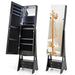 Inside the cabinet, there are 72 earring slots and 24 holes, 30 necklace and bracelet hooks, 72 ring slots, 3 storage shelves and 2 drawers to keep various items well organized and easy to access. And the soft velvet lining helps protect your jewelry. But that's not all! The jewelry cabinet features a bottom shelf and 4 drawers to offer more room for your belongings. 3 holes on each side of the stand allow you to adjust the most suitable angle according to your needs, ensuring a perfect view every time. Moreover, the jewelry armoire also comes with a small makeup mirror and a foldable storage shelf to add convenience and functionality to your daily routine. More importantly, the built-in LED light strip can illuminate your treasures and make it easier to choose the perfect piece. Large Storage Capacity: The freestanding jewelry organizer has 72 earring slots and 24 holes, 30 necklace and bracelet hooks, 72 ring slots, 3 storage shelves, and 2 drawers to store and organize your jewelry and cosmetics. Meanwhile, the bottom shelf and 4 drawers offer extra storage space for your bags, shoes or sundries. Full-length Mirror and 3 Tilt Angles: The jewelry armoire features a frameless and clear full-length mirror for you to see yourself from head to toe. In addition, 3 adjustable tilt angles (106°/102°/98°) allow you to choose the most suitable angle to get a better view. Adjustable Lights and Built-in Mirror: The built-in makeup mirror and 3-color LED light strip make it convenient for you to choose jewelry or apply makeup even in the dark. You can press the light switch to change the light color from yellow light to white light or blue light. The light is powered by 3 x AA 1.5V batteries (not included). Plus, the foldable shelf holds your cosmetics or brushes. Built to Last and User-friendly Design: Made of high grade material and built with a stable base, the jewelry storage cabinet is not easy to wobble and remain steady. Moreover, the magnetic door catch keeps the cabinet door tightly closed and the premium metal hinges ensure long-lasting use. Easy Assembly and Elegant Charm: With the easy-to-understand instruction, you can install the jewelry cabinet in a short time. Additionally, the jewelry cabinet with full-length mirror will bring both convenience and style to any bedroom, powder room, or cloakroom.