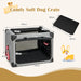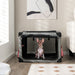 The folding kennel's core is a strong yet lightweight metal frame, featuring an inner X-shape configuration that bolsters stability. Rounded corners safeguard your pet—and you—against any sharp edges, ensuring a hazard-free environment within the travel carrier.