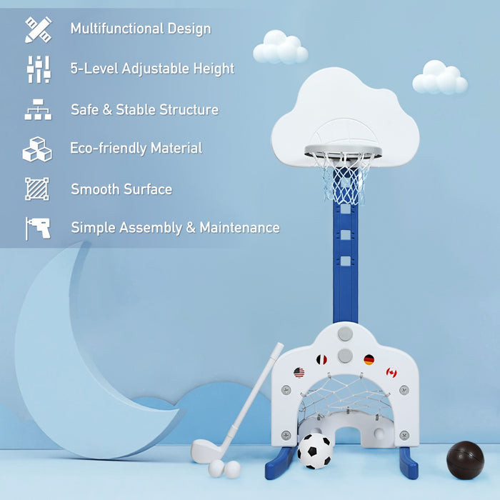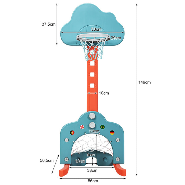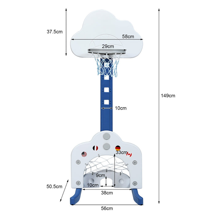 3-in-1 Adjustable Basketball Hoop Set - Multipurpose Sports Stand with Variable Height - Perfect for Kids and Adults of Different Ages and Heights