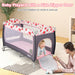 Our 3-in-1 baby playard is an ideal choice for newborns to sleep safely and have fun! Made of solid iron pipe frame and durable oxford cloth, this baby playard ensures great stability and long-lasting use. Combining a bassinet bed, diaper table and activity center, our baby playard can be used in various ways and can accompany the growth of your baby. The diaper table can help parents change diapers easily without bending over. And the soft mattress offers a comfortable space for babies to rest or sleep. The breathable mesh netting is high enough to keep the baby in place and ensures great visibility for parents to observe the baby at any time. The zippered side door offers baby easy access to the playpen. 3 cute toys can bring a lot of amusement to the baby while making them fall asleep quickly. There are 2 casters with brakes equipped for easy moving and relocation, and all corners are covered to protect babies. The folding design makes the playpen easy to store and carry. You can take it anywhere with the carrying bag. 3-in-1 Multifunctional Baby Playard: Combining a bassinet bed, diaper table and activity center, our baby playard can meet various needs. The diaper table frees parents from bending over to change diapers, and the soft mattress provides a place for the baby to sleep. Besides, the roomy playpen gives a cozy space for the baby to stand and play freely. Cute Toys & Zippered Door Design: 3 attractive hanging star-shaped toys can not only promote the baby's visual development but also improve the grasping ability. In addition, the side of the playpen is designed with a zippered door for easy opening, making it convenient for kids to climb in and out while adding more fun. Durable Material & Safety Details: Made of wear resistant and soft oxford cloth, this baby playpen ensures great durability and provides your baby a comfortable touch. Moreover, the 4-sided breathable mesh fabric ensures healthy air circulation and provides better visibility for parents to observe the baby at any time. Stable Structure & Free Movement: Scientific 7-point metal tube supporting structure at the bottom can evenly distribute weight and improve overall stability. What's more, 2 wheels make it convenient for parents to move the baby playpen from room to room and the lockable design ensures added stability and safety. Detachable & Folding Design: The diaper table, mattress and toy rack can be easily removed from the baby playard. After removing these parts, the playpen can be quickly folded up without extra tools for easy storage and transportation when not in use. And you can take it anywhere with the provided carrying bag.
