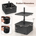 Colour: Black Material: HDPE, Metal Product Dimensions: 53 x 53 x 45 cm (L x W x H) Size of the Planter Box: 53 x 53 x 30 cm (L x W x H) Size of the Table Tray: 53 x 53 cm (L x W) Interior Size: 45 x 46 x 24 cm (L x W x H) Suitable Umbrella Pole Diameter: 38 mm/48 mm Suitable Patio Umbrella Size: 180/210/250/270/300 cm Suitable Offset Umbrella Size: 270-300 cm Fill Capacity of the Sand: 80 kg Fill Capacity of the Water: 55 L Net Weight: 9.5 kg Box QTY: 1 (May vary by batch) Package Includes: 1 x Umbrella Base 1 x Table Tray 1 x Weighted Bag 1 x Instructional Manual