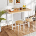 This 3-piece set, comprising 2 chairs and a table, is designed with a space-saving concept, making it an ideal choice for small spaces or apartments. The table features a wide and smooth tabletop made from premium MDF with veneers, providing a generous surface for meals, gatherings, or even a workspace. Besides, the sturdy and stable frame is crafted from robust metal, complete with adjustable foot pads for stability on any flooring, and tight screw connections for added security. The 2 dining chairs offer a comfortable backrest and a stable X-shaped frame, blending support with a modern design, while the wide round seat provides a spacious seating area for comfort. Hence, this 3-piece kitchen table and chair set is a perfect addition to your dining room, kitchen or living room. Selected MDF Tabletop: This elegant kitchen table boasts a large tabletop surface, providing ample space for meals, gatherings, or even a workspace. The table's top is made of premium MDF tabletop with veneers, ensuring long-term use. Sturdy and Stable Frame: Built to last, this kitchen furniture set features a robust metal frame with adjustable foot pads, ensuring stability on any flooring. Additionally, the tight screw connections add extra stability to the entire frame. Space-saving Furniture Set: The 2 chairs can be tucked neatly under the table when not in use. The rectangular kitchen table fits into any narrow space, you can place it against the wall or behind the couch, saving your room space. Premium Dining Chairs: Each dining chair features a comfortable backrest and a stable X-shaped frame, providing both support and a modern aesthetic. Plus, the wide round seat offers a spacious seating area. Easy Maintenance and Dimensions: The smooth veneered surface is not only stylish but also easy to wipe clean, which saves you time and energy. The table's overall dimensions are 107 x 56 x 76 cm(L x W x H), and each chair's dimensions are 30 x 46 cm (Dia x H).