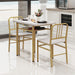 The kitchen chairs of the space-saving 3-piece dining table set feature perfect tilt angle, ensuring a cozy dining experience. Plus, the dining table set is designed with a built-in storage rack underneath the table, which allows you to neatly organize your dining essentials and keep them within easy reach. Additionally, the chairs can be neatly tucked away under the table after the meal, making it ideal for smaller dining areas or cozy spaces. Crafted with a sturdy metal frame, both the dining table and chairs offer unrivaled strength and stability. If you are looking for such a product, do not hesitate to buy it! Spacious 3 Piece Dining Set: This set includes a kitchen table measuring 80 x 53 x 76 cm (L x W x H) and 2 armless chairs measuring 45 x 80 cm(L x W). When it comes to enjoying a cozy meal or hosting intimate gatherings with friends, the 3 piece kitchen table set is the perfect choice. Space-saving Design: The armless chairs can be conveniently tucked under the table after the meal, making the 3 piece dining table set ideal for those with limited space such as apartment dwellers or individuals with smaller rooms. Convenient Under Desk Storage: The rectangle table is equipped with a storage rack, which is perfect for storing wines, plates, tableware, tissues or books, keeping them within easy reach during your meals. Also, the clever design ensures that you have ample legroom to move freely while seated. Sturdy & Stable Construction: Both the legs of the kitchen table and chairs are constructed from powder-coated metal frame, offering durability and stability. Additionally, the adjustable foot pads on both the table and chairs provide balance on uneven surfaces. Retro Appeal / Contemporary Style: With a rustic wood grain (Brown), the rectangle dinette furniture set exudes a timeless charm. With marble grain and gold metal frame (White), the rectangle dinette furniture set exudes a chic appearance. Also, the backrests with sleek lines add a touch of modern flair.