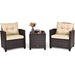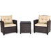 The set's centerpiece is an exquisite coffee table crowned with a high-quality tempered glass top. Resistant to the sun's rays and built to last, the glass is held securely by corner suction cups, ensuring stability for your beverages and decorative items. The sleek design melds function with style, adding a chic touch to your outdoor decor.