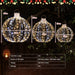 Must have festival decorative round light balls! Contains 3 different sizes of light balls strung with delicate bead strings, you can combine or arrange our 3 packs of Christmas-led light balls in any way to achieve the desired decorative effect. Its rust-proof iron frame is not only strong and durable but also makes our round light balls more gorgeous. Moreover, the 3 light globe spheres contain 180 warm lights and 180 white lights, some of which can be twinkled to immerse you in a joyful festival atmosphere. In addition, our light globe balls are so versatile that they can not only be fixed in the grass or snow by 6 ground stakes but also suspended from the ceiling or trees by built-in handles. Of course, it can also be placed directly on the ground indoors. With an IP44 rating, it will certainly be an attractive decoration indoors or outdoors! 180 warm lights and 180 white lights enhance the festive atmosphere. 6 ground stakes maintain a high level of stability to withstand the wind. Includes 3 sizes of spherical light globes that can be randomly combined. Built-in handle for easy hanging on the tree The rust-proof iron frame is resistant to warping IP44 waterproof rating ensures safe use in the rain An ornate string of beads on an iron stand adds to its beauty Practical and sophisticated design for lawns, porches, and indoors 30 cable ties help to mount the ball and secure the connection