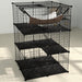 The 3-tier large cat cage is a versatile and spacious solution for your pet's needs. The top tier provides a cozy rest area, while the middle tier is perfect for playtime, and the bottom tier includes space for food and water bowls. Constructed from reliable PP and powder-coated metal pipes, the cage is suitable for long term use, it also features safe anti-tipping devices that allows you to attach it to the wall, ensuring stability and preventing accidents. This cage is not only ideal for cats but also suitable for other small animals like ferrets, rabbits, dogs, and squirrels, making it a perfect playpen for various pets. Assembly is quick and easy, with panels that connect securely using joints and zip ties. Bullet Point: 3-Tier Large Cat Cage: This cat cage offers 3 partitioned areas for your feline friend to rest, play, and eat comfortably. The top tier serves as a cozy rest area, the middle tier is perfect for playtime, and the bottom tier is ideal for feeding, complete with space for food and water bowls. Quick & Easy Installation: The assembly process is straightforward, making it a breeze to set up and take down when needed. You can connect the panels with the joints, and use the included zip ties to fasten the panels securely. Ideal for Various Animals: The multiple levels make it an ideal playpen for different animals, allowing them to climb, explore, and rest in a controlled and safe environment. It is not only suitable for cats but also perfect for other small animals like ferrets, rabbits, dogs, and squirrels. Stable & Safe Frame: Made from selected PP and powder-coated metal pipes, this cat enclosure is built to last and maintain its integrity over time. The safe anti-tipping device allows you to attach the cage to the wall, keeping it firmly in place and prevents accidents. Exquisite Details & Dimensions: The cage boasts wide, elegant platforms for your cat to enjoy, a comfy hammock for relaxation, 2 convenient climbing ladders and 1 sky window for easy access between levels.