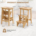 Coloor: Natural/Dark Oak Material: Rubber Wood Overall Dimension: 41 x 56 x 61 cm (L x W x H) Folding Dimension: 41 x 33 x 61 cm (L x W x H) Net Weight: 6 kg Load Capacity of Each Step: 90 kg Box QTY: 1 Package Includes: 1 x Step Stool 1 x Instruction