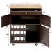 Equipped with a well-proportioned rubber wood top, this trolley offers a spacious area for chopping, seasoning, and arranging your ingredients. Below the top, you'll find a duo of cupboards to securely house your plates and pantry items, while a capacious drawer keeps your cutlery neatly tucked away. For the wine enthusiasts, a built-in 3-tier rack keeps your favorite bottles within arm's reach, making entertaining a breeze.